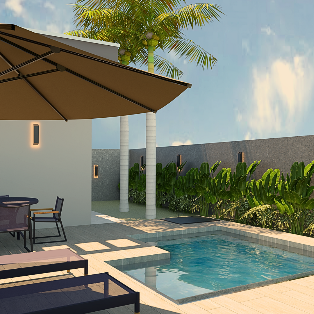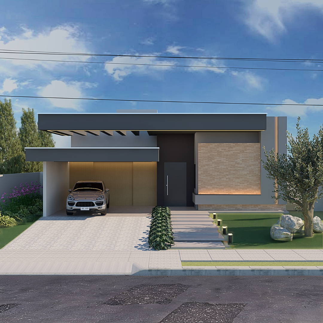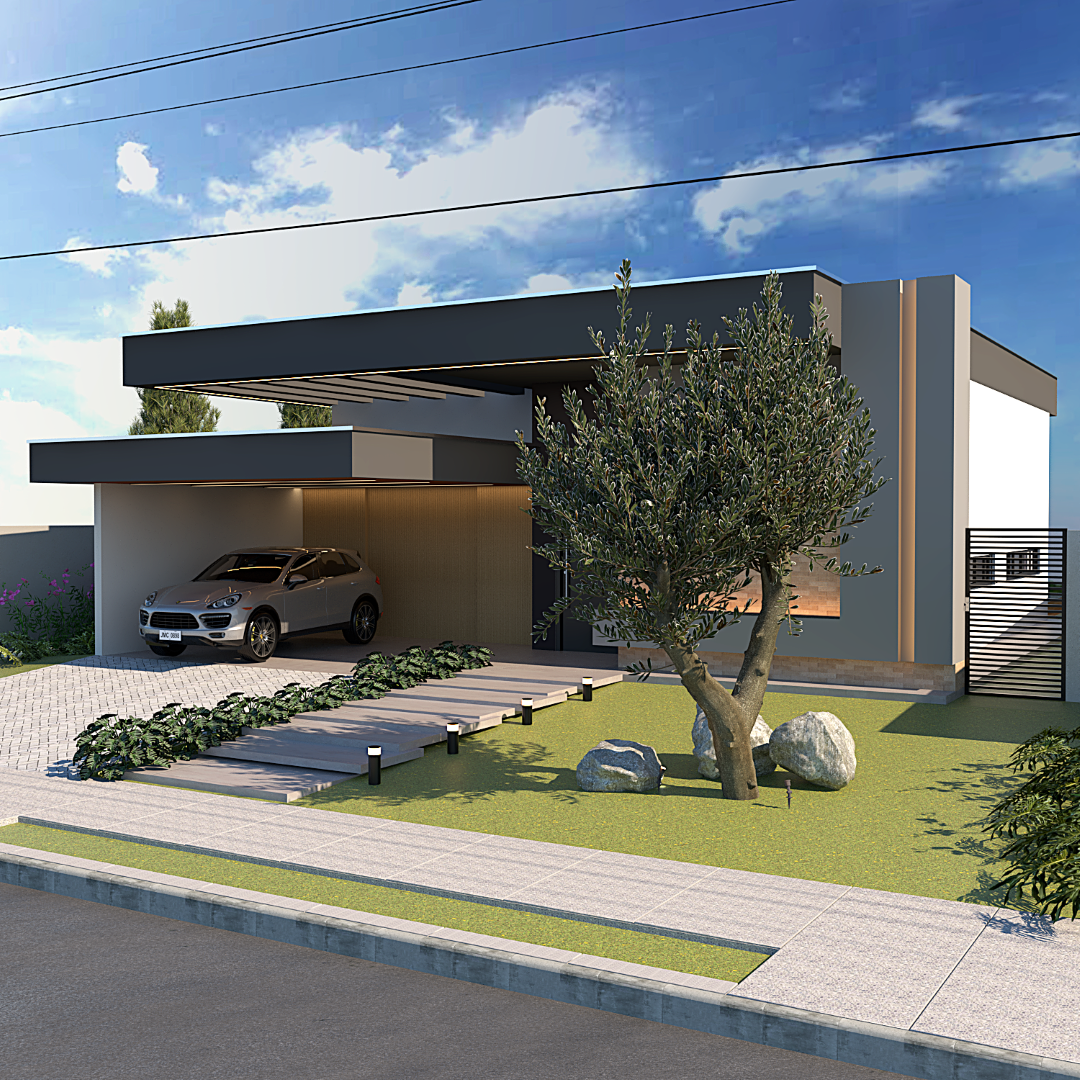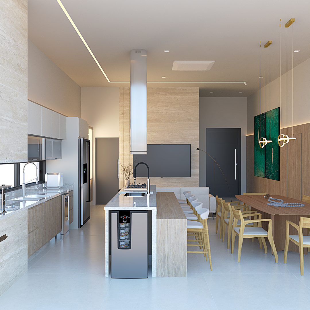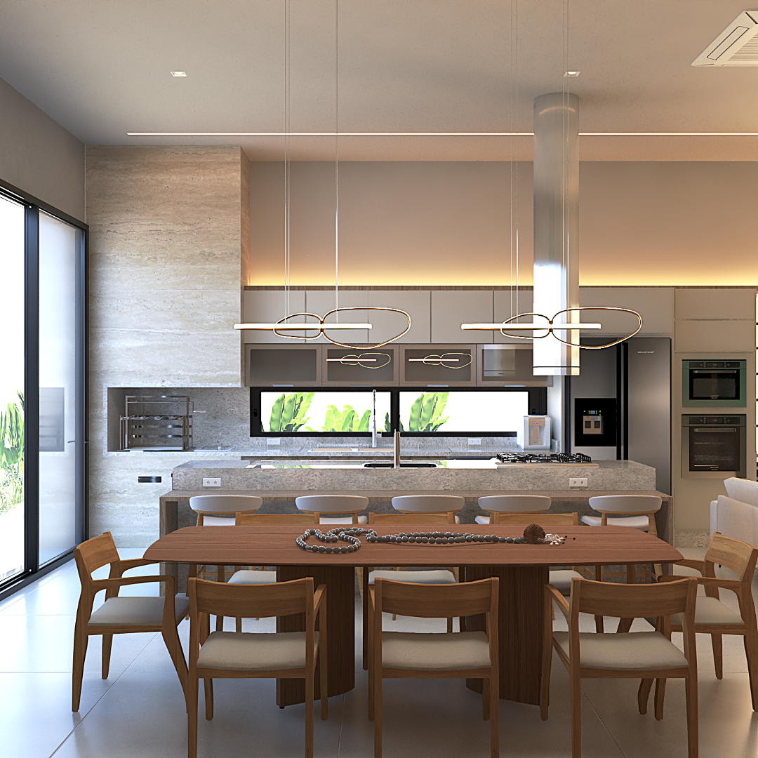 A proposta prioriza circulação fluida, conexão entre os espaços sociais e privados e uma linguagem arquitetônica contemporânea.